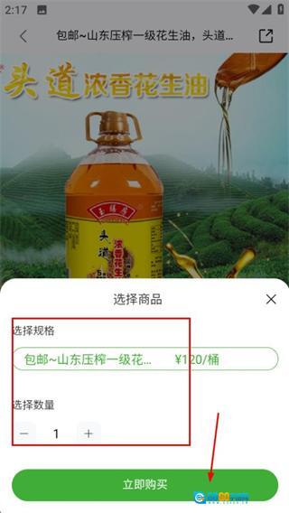 在商品详情页面,点击“立即购买”按钮后,会弹出商品选择的窗口。