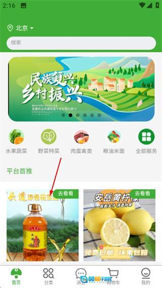 把农产品清晰划分为蔬菜、野菜、特菜、禽畜肉蛋、农副加工、粮油米面等明确品类,分类细致且直观呈现,能引导用户迅速精准地找到目标商品,省去繁琐的筛选环节,有效提高购物查找的效率。