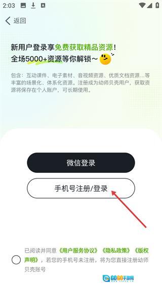进入登录界面,选择【手机号注册/登录】。