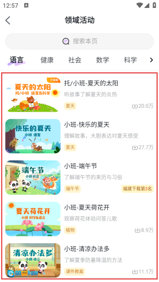 进入领域活动页面后,挑选合适的教案并点击,就能获取所需内容了。