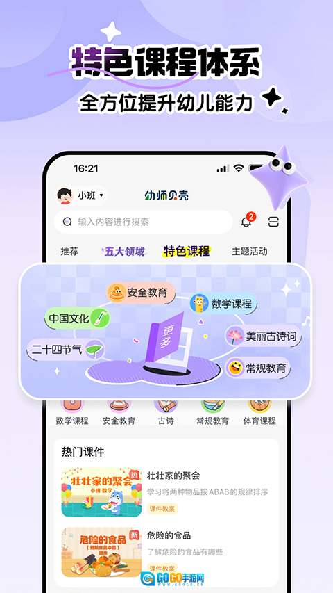 五维课程体系:涵盖健康、语言、社会、艺术、科学五大领域,依据不同年龄段幼儿特点设计阶梯式成长课程,与幼儿园全年教学计划相适配。