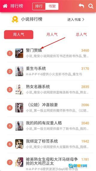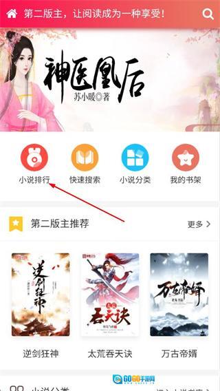 1、在阅读首页,找到并点击“小说排行”选项,即可进入排行榜页面。