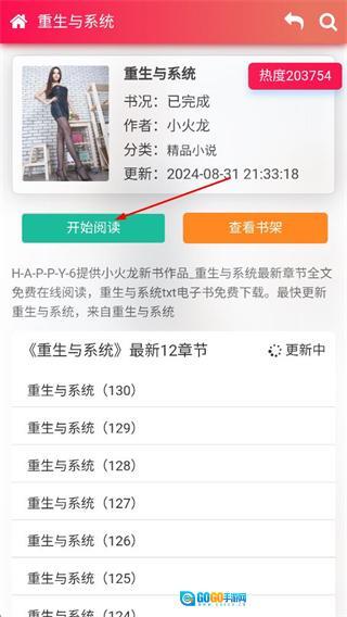 在排行榜页面,点击“重生与系统”,即可进入该小说的详情页面。