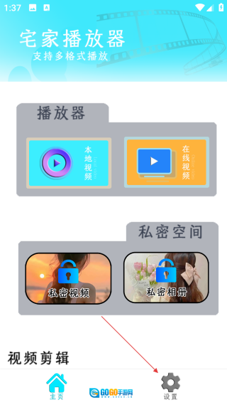 进入宅家播放器的首页后,找到底部的【设置】选项并点击,即可进入功能设置界面。