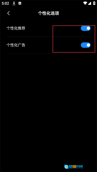 在个性化选项页面,你可以借助开关按钮,分别对“个性化推荐”和“个性化广告”的开启或关闭状态进行控制,根据自身需求调整完毕后,就能完成相关设置了。