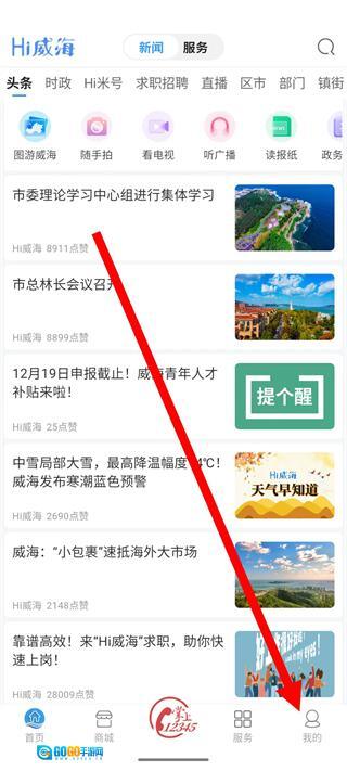 打开Hi威海应用,在主界面找到底部的“我的”按钮并点击,即可进入个人中心页面。