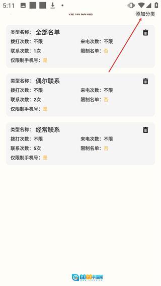 在分类编辑页面,填写【归类名称】【联系次数】等相关信息后,即可完成该通讯分类的设置操作。