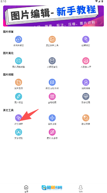 在主界面的“其它工具”分类里,找到“尺寸调整”图标并点击它。