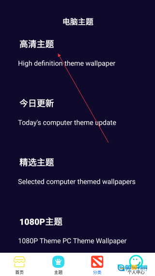 在分类页面,点击【高清主题】选项,即可进入高清主题的选择界面。