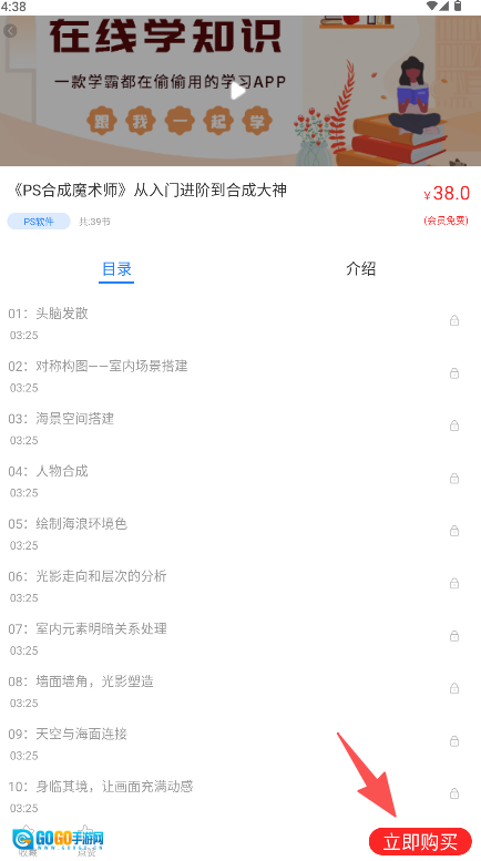 在课程目录页面点击购买后,就能从任意单节课程开始学习。