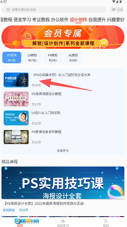我们提供支持按学科分类浏览和关键词搜索的课程浏览与选课系统。用户可以在设计创作、计算机等学科分类下查找课程,并选择加入课程进行学习。