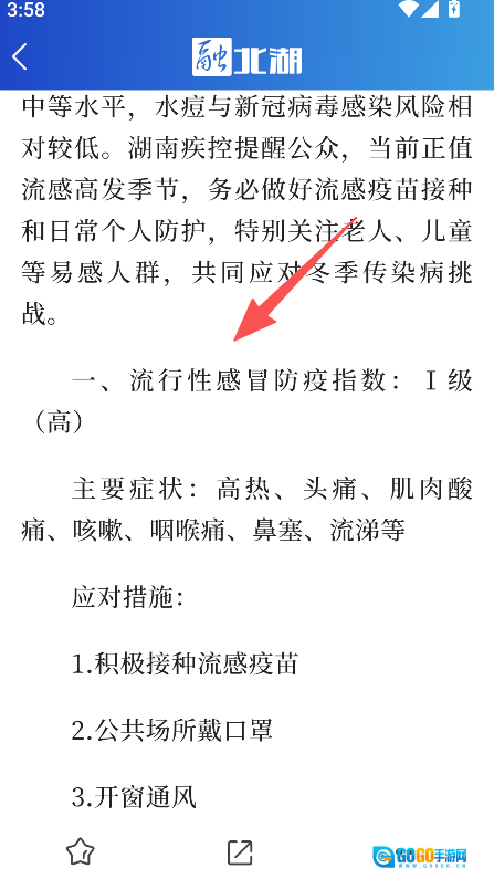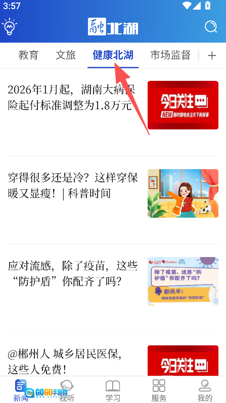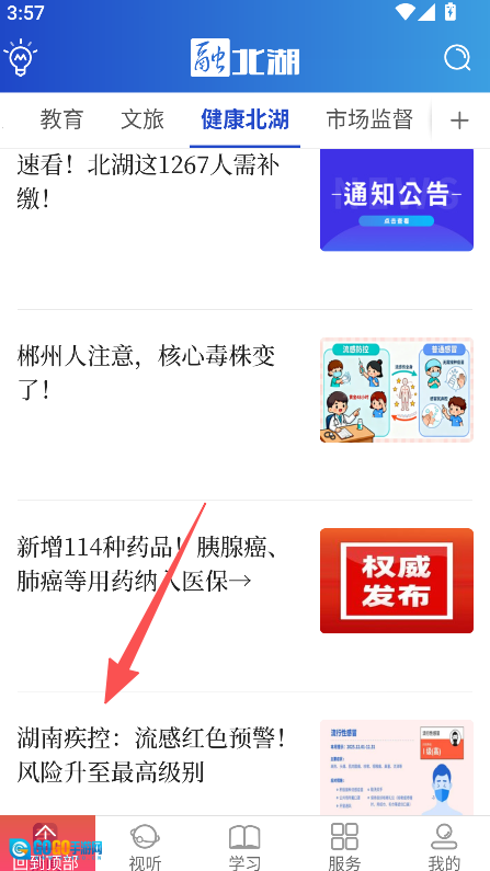 在健康北湖页面选择目标资讯内容。