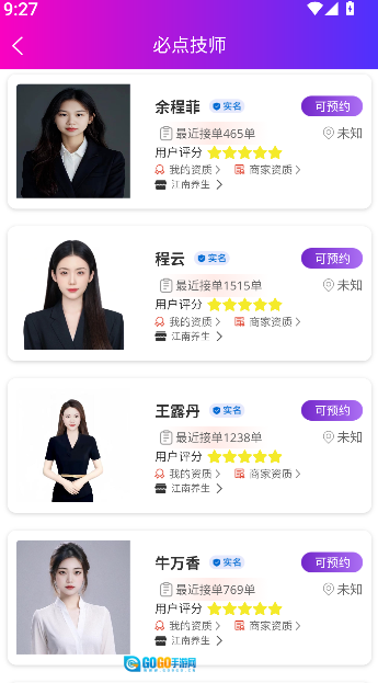 在技师目录里浏览各类技师的列表时,能查看他们的头像、服务项目以及基础信息,以此来进行筛选。