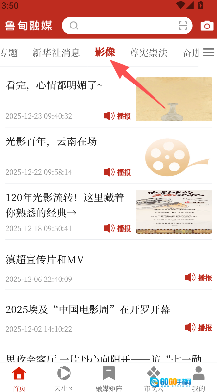 打开软件首页,点击影像频道。