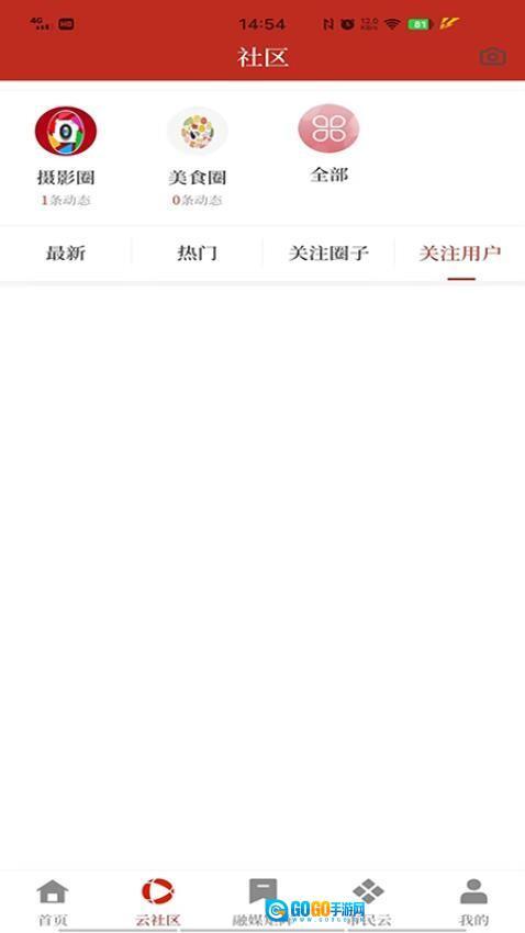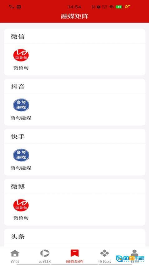 底部设有首页、云社区、融媒矩阵等板块,功能分区清晰明确,方便用户快速切换至不同功能区域。
