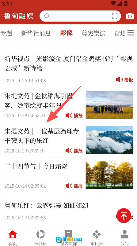 《鲁甸融媒》是一款聚合多元资讯的应用程序,设有专题、新华社消息、影像等频道。其中影像板块会推送光影类内容、本地治理动态、节气相关信息等;每条资讯都标注了发布时间,还配备了语音播报功能。软件底部设有首页、云社区、融媒矩阵、市民云、我的等功能板块,点击任意资讯即可进入详情页面,查看对应的文字内容与配图,能充分满足用户对不同资讯的获取和浏览需求。