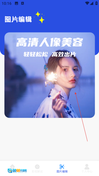 在图片编辑界面,点击【高清人像美容】区域,即可进入图片素材挑选页面。