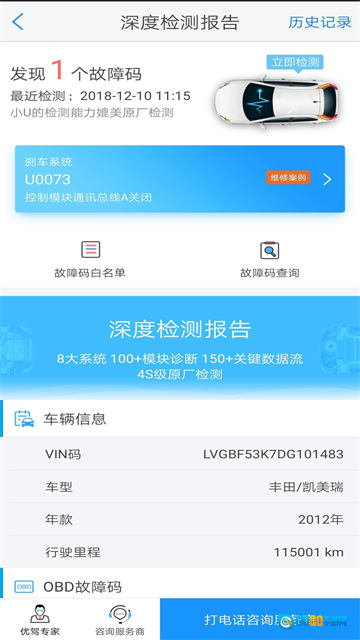 隐患早诊车况:读取汽车故障码,结合大数据分析与专家经验,对车辆动态进行长期监测,提前诊断潜在隐患。