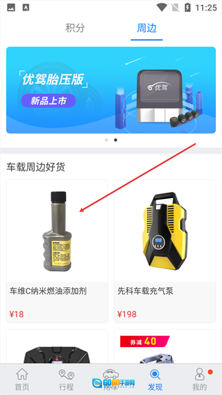 在发现页面里,点击顶部的【周边】标签,就能切换到车载周边商品的展示区域啦。
