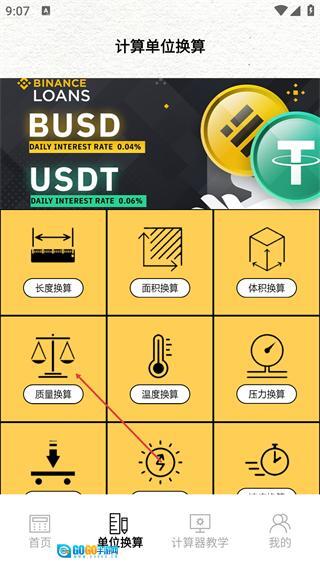 在单位换算页面中选择【质量换算】选项,就能进入质量单位转换的操作界面。