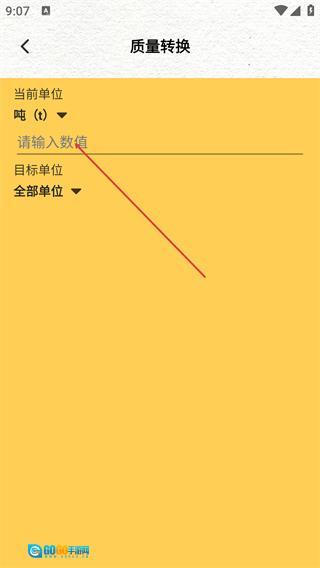 在质量转换页面选定当前单位,填入相应数值后,接着选择目标单位类别。