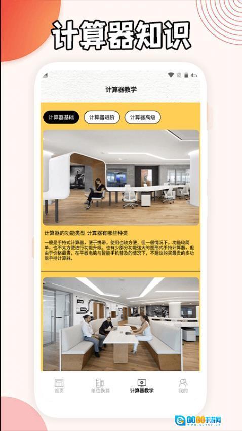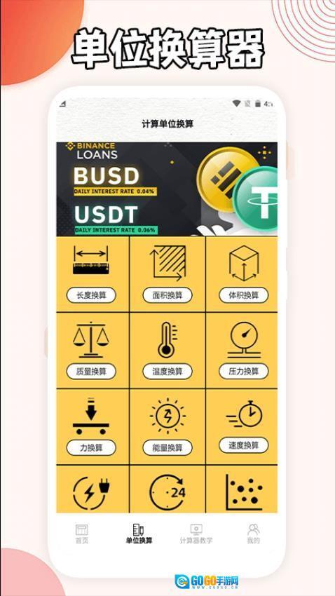 在首页点击【单位换算】选项,就能进入单位换算的功能页面进行相关计算。