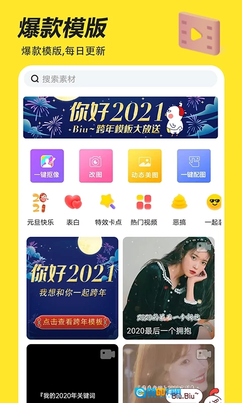 biu神器最新版是一款好用的小视频制作工具,里面有各种各样的搞笑视频,用户能在线查看并挑选合适的视频来用,让你的朋友收获意外的惊喜。另外,Biu神器还能一键生成超酷的照片,有丰富的照片模板和抠图功能,用户可以上传自己的照片进行编辑和创作。