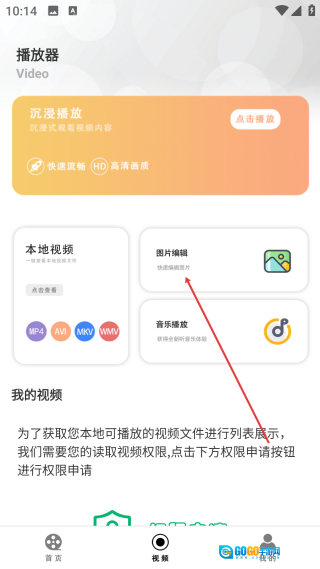 在播放器页面,点击【图片编辑】选项,即可进入用于选择图片的素材浏览页面。