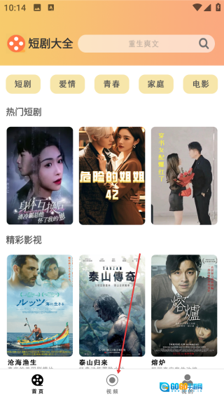 进入短剧大全的首页后,点击页面底部的【视频】选项,即可进入播放器的功能选择界面。