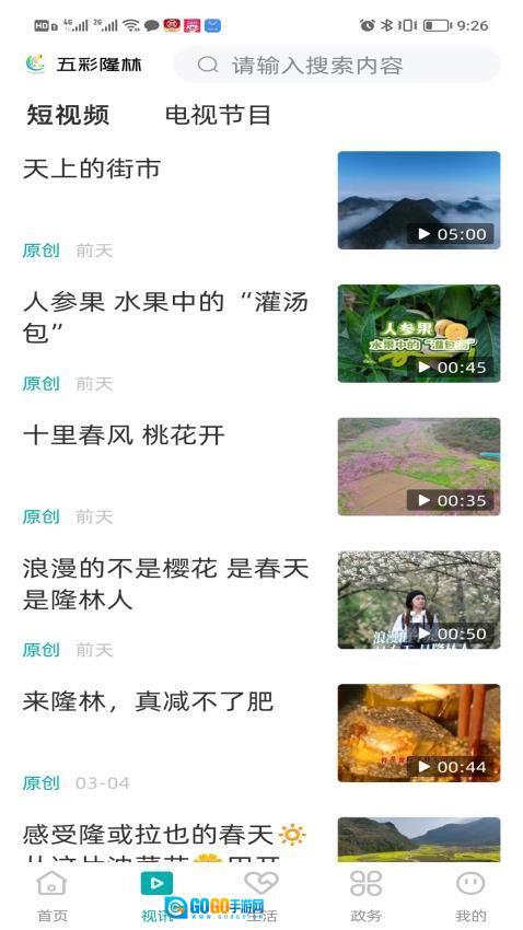《五彩隆林》是一款专注于隆林本地内容的软件,包含短视频与电视节目两大内容类别。平台设有视讯板块,用户可通过该板块切换不同的内容分类,其中呈现了隆林一把手晒任务等专题内容,同时同步更新纪念百色起义周年等本地相关主题内容。软件还提供隆林新闻的日常播报,展示云上廷赖等本地风貌内容,以及彝族火把节等民俗相关内容。用户能够查看不同日期的新闻视频,播放对应内容时会显示阅读量等信息,并且在详情页支持分享等操作。