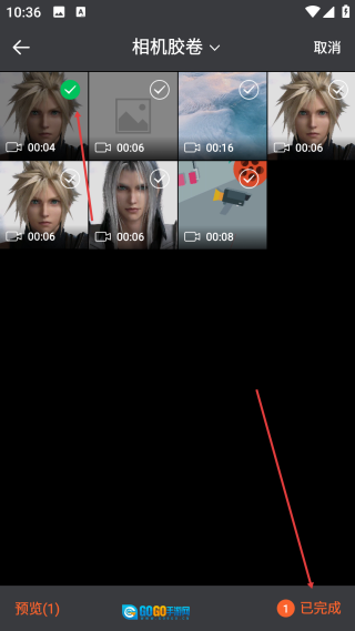 在选择页面中,选中【目标视频】后点击【已完成】按钮,即可进入视频倒放的编辑操作界面。