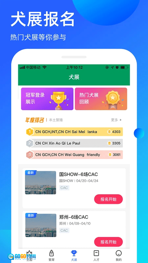 整合Dogshow赛事相关资源,推出赛事预告、在线报名、成绩查询等服务,以满足犬主参与赛事的各类需求。
