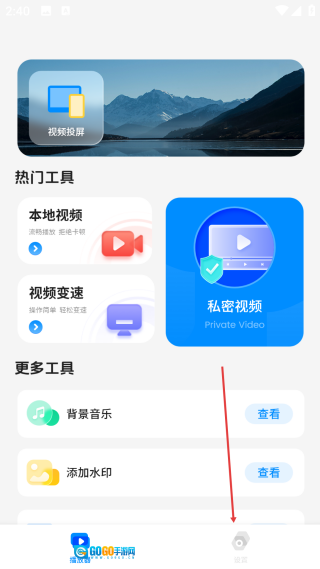 打开播放器页面后,点击底部的【设置】按钮,即可进入设置中心的功能操作界面。