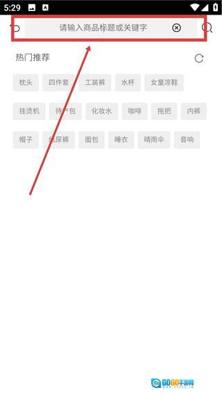 在领券首页点击顶部的搜索框,即可进入搜索界面,准备输入想要查找的商品关键词。
