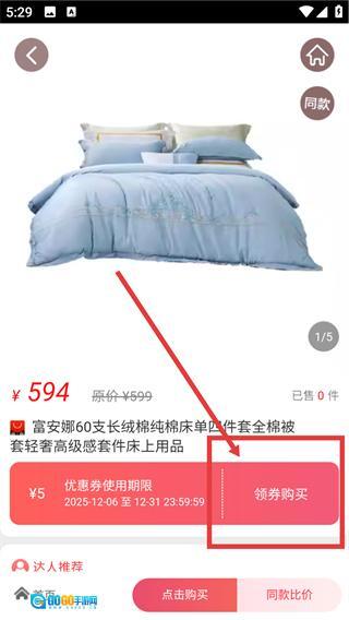 在商品详情页点击【领券购买】按钮,即可领取相应优惠券并进入购买流程,享受优惠。