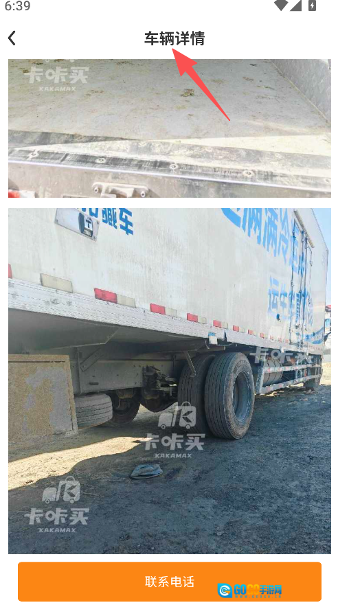 点击目标车辆进入详情页面,查看实拍图片并获取联系电话。