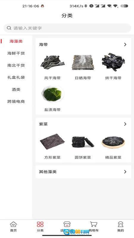 商品分类一目了然,像海藻类、干制品这类品类划分清晰,能让你更快筛选和找到想要的特产以及相关品类。