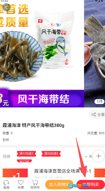 在商品详情页核对好信息后,点击“立即购买”按钮就能完成下单。