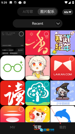 在写歌页面,点击底部的【我的】选项,就能进入个人中心的功能界面啦。