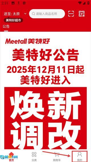 在展示【美特好公告】的首页,点击底部导航栏中的【我的】选项,就能进入个人相关功能页面。