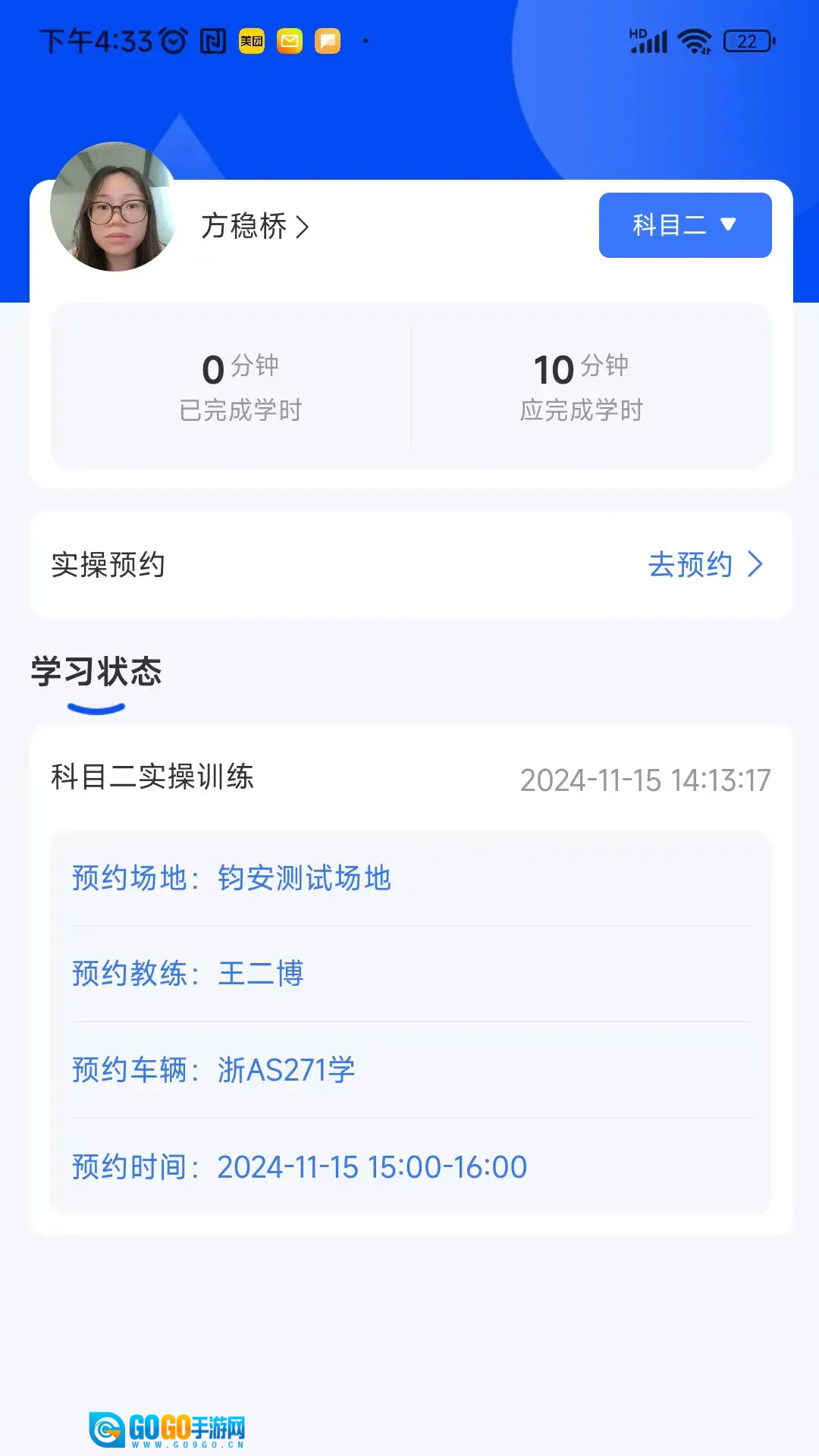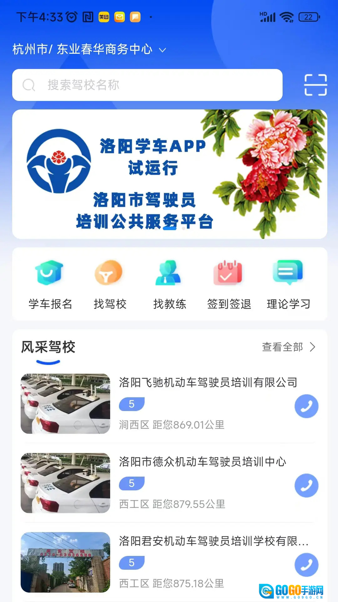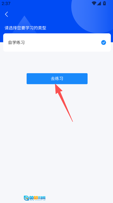 打开洛阳学车,选择自学练习类型点击去练习。