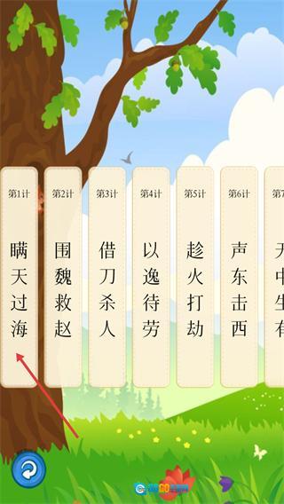 进入【听故事学三十六计】的页面后,找到并点击播放按钮,就能启动通过故事学习三十六计的流程了。
