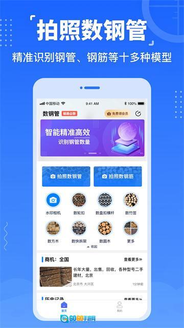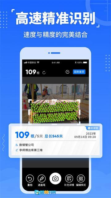 数钢管免费软件是一款实用的办公工具,能快速帮用户统计钢管数量,复杂操作一键即可完成。它具备强大的拍照功能,可完整呈现钢管总量,还能识别更多物品。借助人工智能技术,1秒内就能自动计数数百根钢管,支持拍照或从相册选图识别数量。作为为建筑业服务的综合平台,它致力于为全国建筑材料与设备的分销商及制造商拓展新的销售渠道。