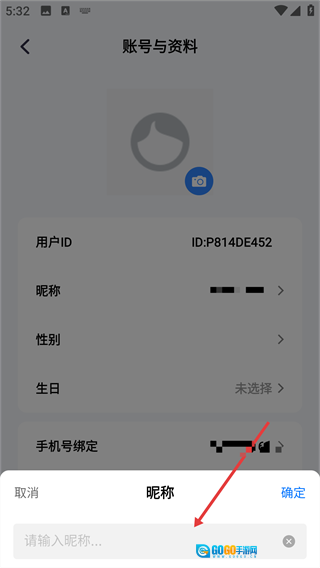 弹出【昵称】输入框,准备输入新的昵称。