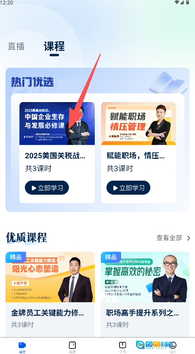 在首页点击“课程”。