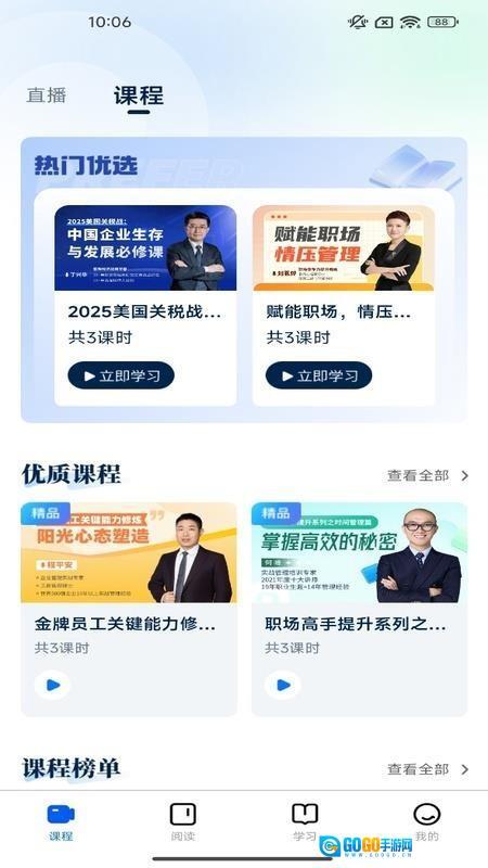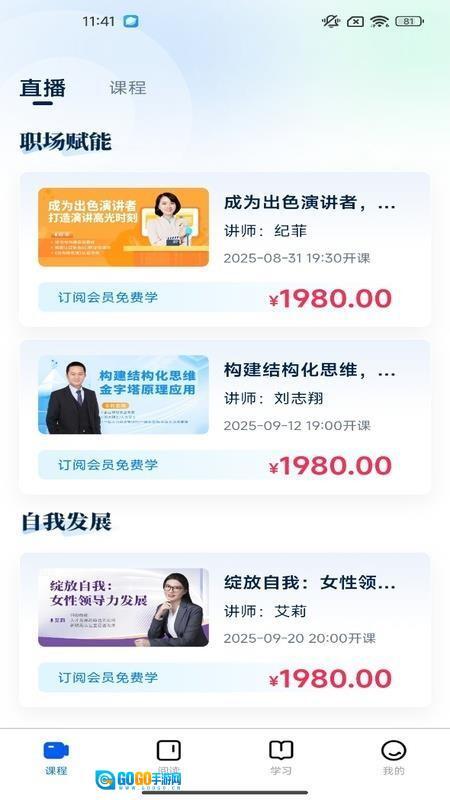 课程体系以职场赋能与自我发展等为核心方向进行构建,主题划分清晰,定位明确。