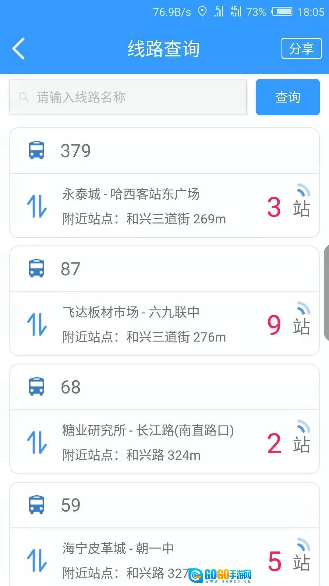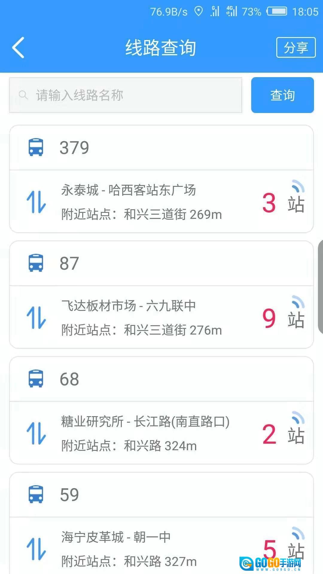 2、直接输入公交线路名称,即可查询该线路途经的站点信息。