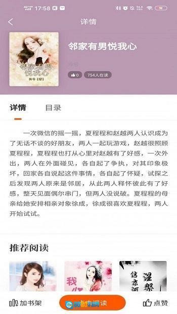 2.全站小说都能免费阅读,最新鲜、最热门的小说这里全都有,还会依据你不同的阅读喜好来推荐合适的图书。