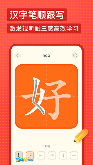 每个汉字都配备了笔顺动图和跟写练习,通过分步展示书写的逻辑,同时搭配真人标准发音,打造出多感官结合的汉语学习情境。