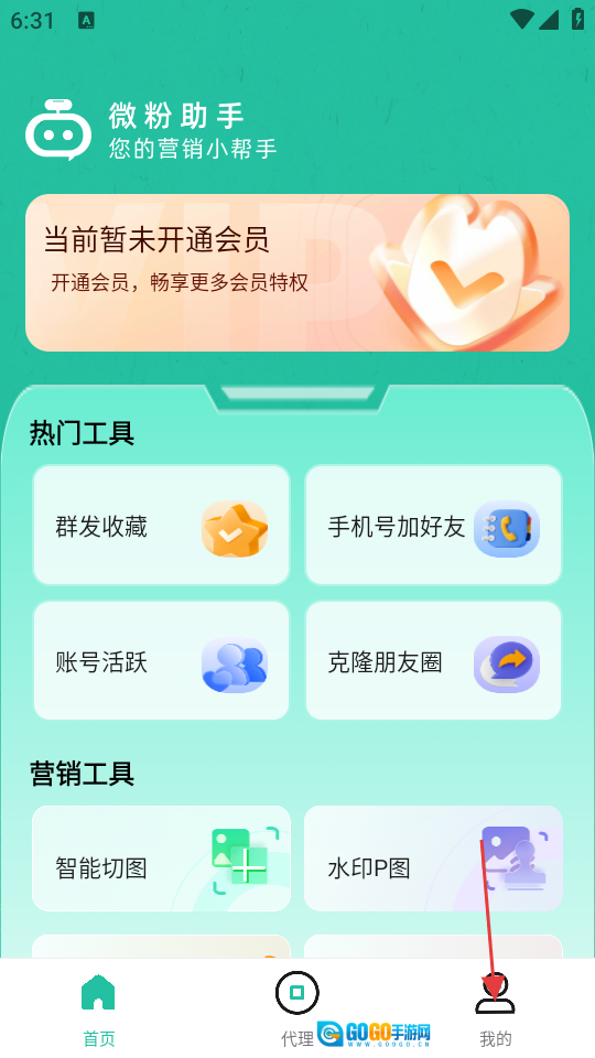 在微粉助手的主界面中,点击底部的【我的】按钮,即可进入个人页面。